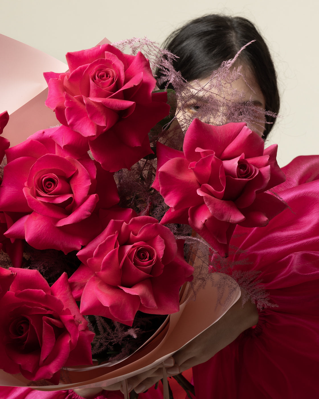 Culoarea fucsia este un simbol al iubirii, ceea ce face buchetul sa fie o alegere perfecta pentru a exprima sentimentele.