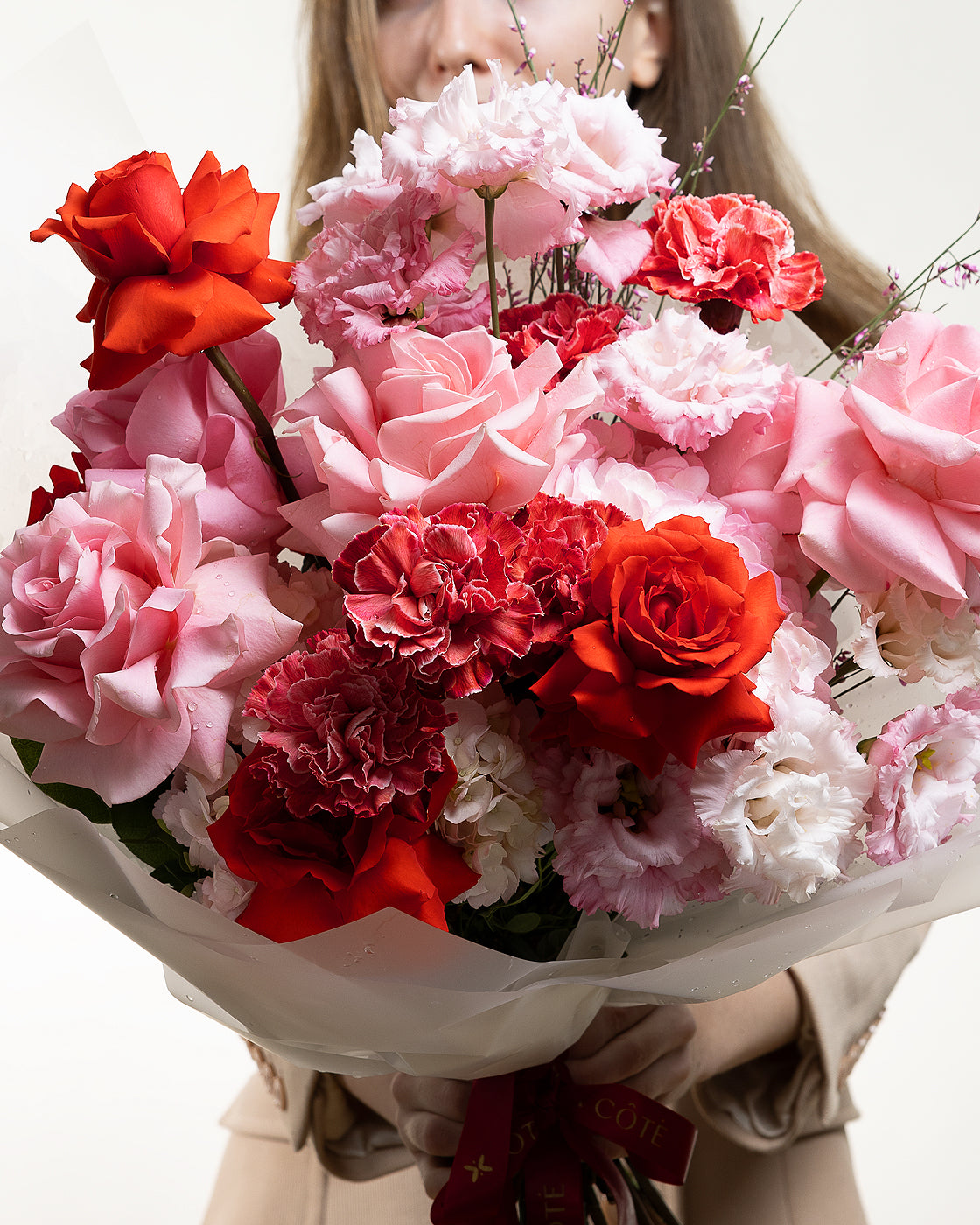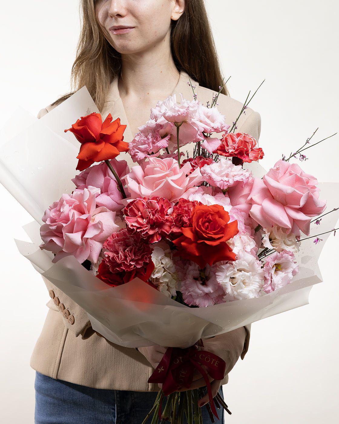 În funcție de disponibilitatea în stoc a florilor, compoziția finală a buchetului poate diferi ușor de cea prezentată.