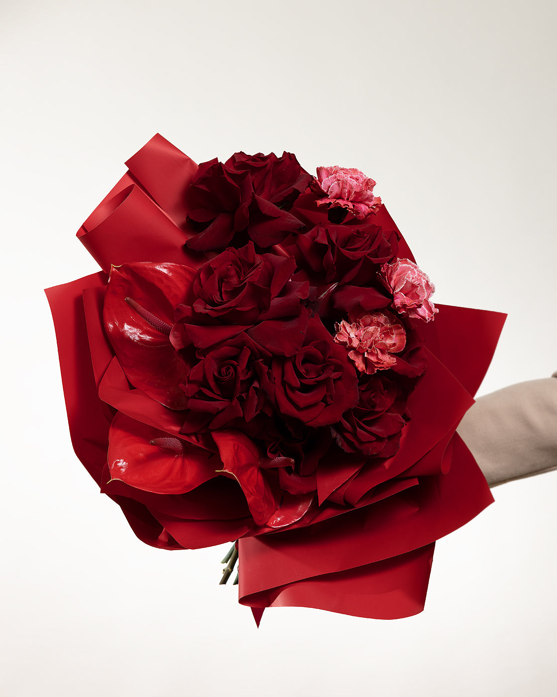 Alegeți buchetul nostru din trandafiri roșii și anthurium roșu pentru a aduce un strop de eleganță și iubire în viața ta sau a celor dragi!